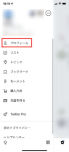 Twitter Proで初めてカテゴリーを選択する場合には、Twitterを起動してホーム画面から左上のアイコンをタップします。