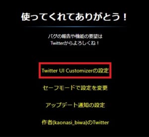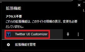 右上の拡張機能アイコンをクリックし、Twitter UI Customizerを押します。