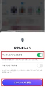スペース利用の際にマイクへのアクセスを許可を求められたら、オンにしてからこのスペースに参加するようにしましょう。