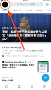 Twitterアプリを開いて左上の丸いアイコンをタップしてユーザーページを開きます。