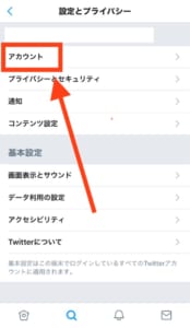 設定とプライバシーの一覧から「アカウント」の項目を選択してタップしてください。