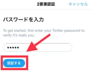 パスワードを入力したら「認証する」を選択してタップします。これで二段階認証の設定を有効にすることができました。
