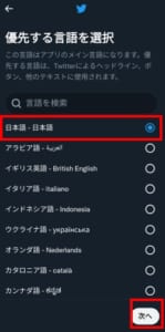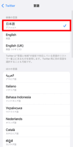 設定を開きアプリからTwitterをタップします。一番下にある言語をタップします。