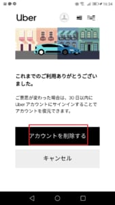 Uber Eatsのアカウントを削除すると30日以上経過後全ての情報が削除されます。