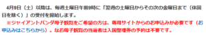 4月9日(土曜日) | 4月16日(土曜日)~4月22日(金曜日) |