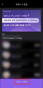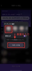 アーティストを選択した後にサポートする数量を入力して、サポートするをタップすれば完了です。