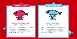 先ほど紹介したおさかなのエレメントにより、選ばれる魚が違います。