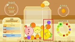 つまり、弾けてフルーツが箱の外に行ってしまっても、先に箱の中でスイカができれば、その得点は加算されることになります。