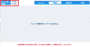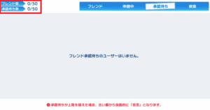 フレンド申請中と申請待ちにもそれぞれ50人の枠があります。