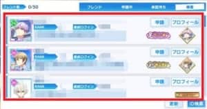 逆に言えば、自分のプロフィールページも相手のフレンド申請時などにチェックすることが出来るため、自己紹介文やキャラクターカード、称号などで自分の推しなどについてアピールすることで、趣味の合った相手とフレンドになれるでしょう。