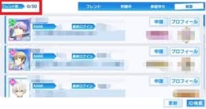 また、相手にフレンド申請を送ったとしても、フレンド申請は新着50人までしか残らず、超えた分は自動的に拒否されてしまいます。