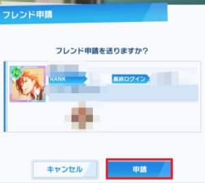 検索から申請を押し、申請をタップすればフレンド申請が送れます。
