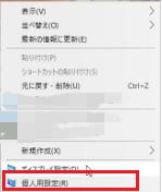 この設定をするには、まずデスクトップ上で右クリックをし、表示されたメニューから個人用設定をクリックしてください。