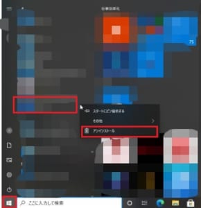 不要なアプリをアンインストールするには、Windowsボタンを選択し、適当なアプリにカーソルを合わせて右クリックしてアンインストールを選んでください。