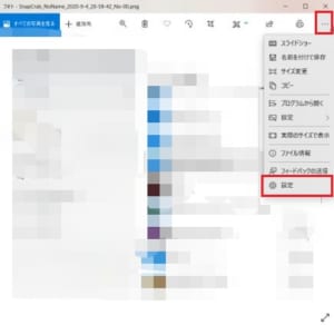 まずフォトを起動し(適当な画像を開く)、メニューアイコンを選択したら設定をクリックしてください。