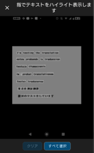 なお、すべて同じ言語であればすべて選択でスクショ内の文章全てを検索できますが、複数の言語が存在していると翻訳できません。