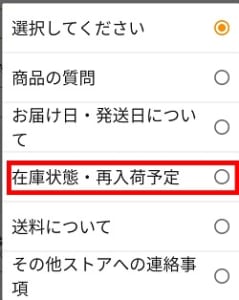 在庫状態・再入荷予定を選びます。次に以下の内容を入力します。