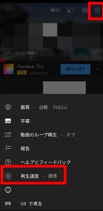 スマホで再生速度を変更する場合、動画を再生した後右上の⚙をタップします。
