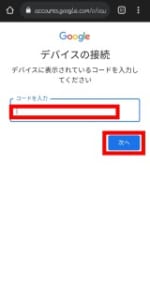 開いたページにテレビで表示されているコードを入力します。次の画面で別のアカウントをタップします。