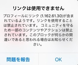 プロフィールのウェブリンク欄が空欄で、URLなどの投稿もしていない状態なのに「リンクは使用できません。プロフィールにリンクが含まれているようです」というエラーが発生することがあります。