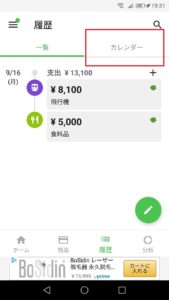 また、上のタブから「カレンダー」を選ぶと、○月○日にいくらの収入、支出などがわかります。