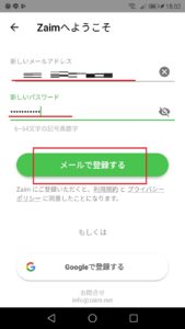 どちらも入力した後、「メールで登録する」をタップしましょう。