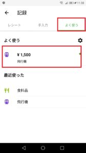履歴は今までの「収入」「支出」などが表示されます。