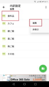 まず、内訳を編集したいカテゴリをタップ。