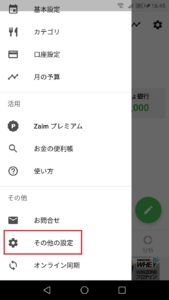 まず、メニューバーをタップ後「その他の設定」をタップ。
