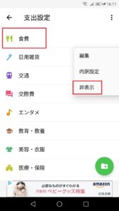 「非表示」をタップで必要のないカテゴリを非表示にできます。