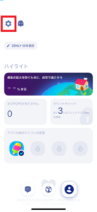 マイページに飛ぶので、左上にある歯車マークの設定をタップしましょう。