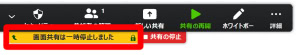 上記のように「共有の再開」という表示に切り替わり、ツールバーも黄色の「画面共有は一時停止しました」という表示になれば、ゲストの画面は共有していた最後の状態のまま停止されます。