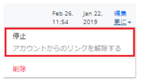ユーザーを無効にするには、無効にしたいユーザーの横にある更にをクリックし停止を選択すればOKです。