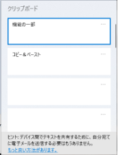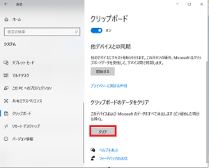 | クリップボード | クリップボードの履歴が無効になっている | クリップボードの履歴を有効にする |