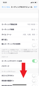 ミーティングスケジュールを開いたら、画面の一番下までスクロールしましょう。