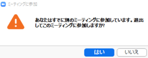 参加者へ「ホストには進行中の別ミーティングがあります」と表示される原因は、ホスト側が複数のミーティングルーム参加している事です。