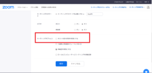 ミーティングオプションの項目があるので、その中から「ホストの前の参加を有効にする」にチェックを入れましょう。