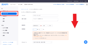 「新しいミーティングをスケジュールする」を選択したら一番下までスクロールします。