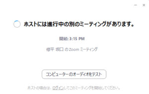 Zoomで「ホストには進行中の別ミーティングがあります」と表示され、ミーティングルームに入れないことがあります。