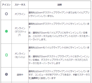 Zoomは基本的にSkypeのように自分のステータスを好きなように変更することはできません。