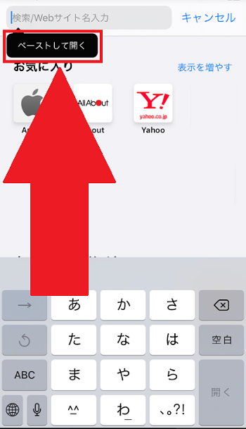 Safariで招待URLを開きなおします。検索欄をタップしてペーストして開くを選びます。