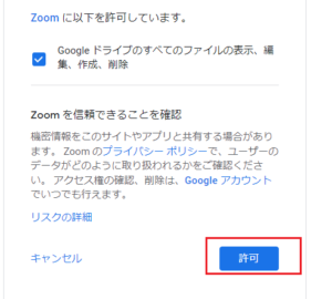 Zoomへの権限について上のような画面が表示されるので「許可」をクリック。