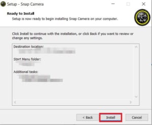 「Finish」をクリックすることで「Snap Camera」を利用することができるようになります。
