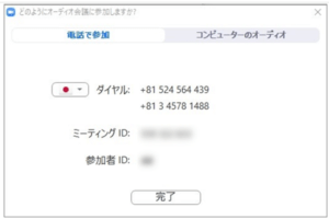「電話で参加」はテレビ会議システムを通じてZoomミーティングに参加できるというものです。